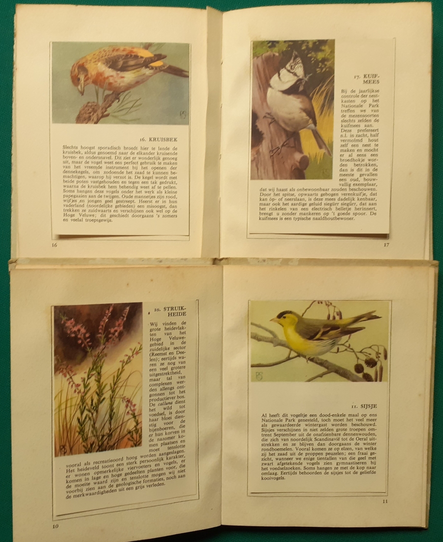 De Hoge Veluwe Hille & Zoon, Zaandam; Ausgaben um 1950; es handelt sich um drei Bücher mit festem Hartpappeinband und 3 x 30 = 90 montierten sauber eingeklebten Naturbildern (komplett) im Format 10 x 7,5 cm. Zu jedem Bild gehört eine ausführliche Beschreibung in holländischer Sprache. Die Einbände sind leicht fleckig; die Bücher sind jeweils komplett und insgesamt in gutem altersgemäßen Zustand Komplettpreis der drei Bände: 29 EUR |