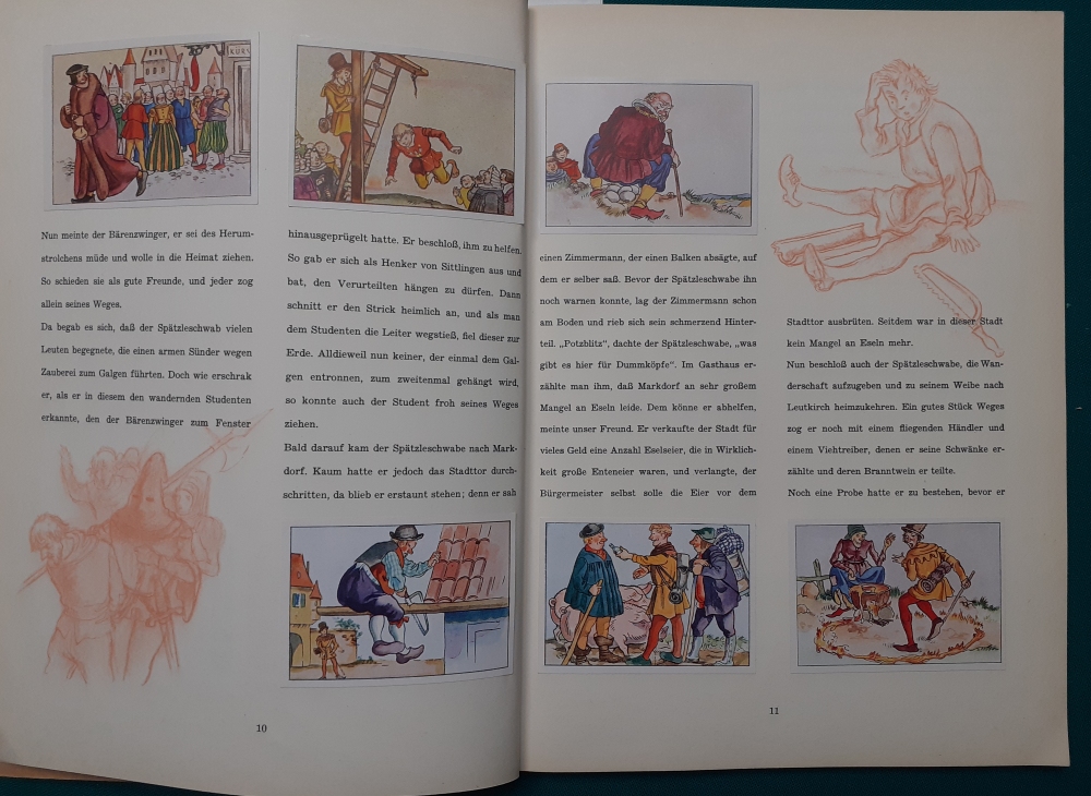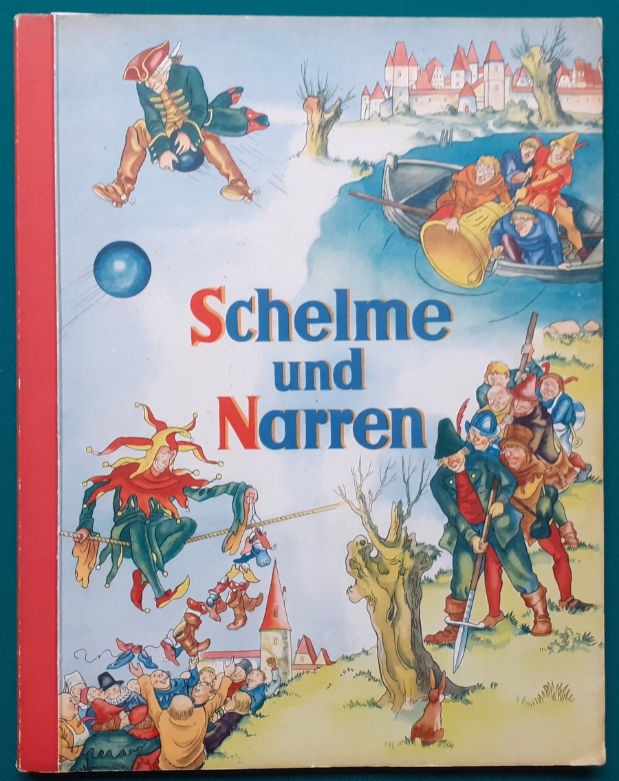 Schelme und Narren Holsteinische Margarine Werke Wagner Elmshorn; Erstausgabe von 1951, 50 Seiten mit 94 von 96 montierten farbigen Sammelbildern; es fehlen die Bilder 31 und 70; sauber eingeklebt; Format der Einzelbilder 8,5 x 6 cm; Album mit Hartpappeinband im Format 30 x 23 cm; etwas an den Albumkanten bestoßen; sauber und gepflegt und guter altersgemäßer Zustand