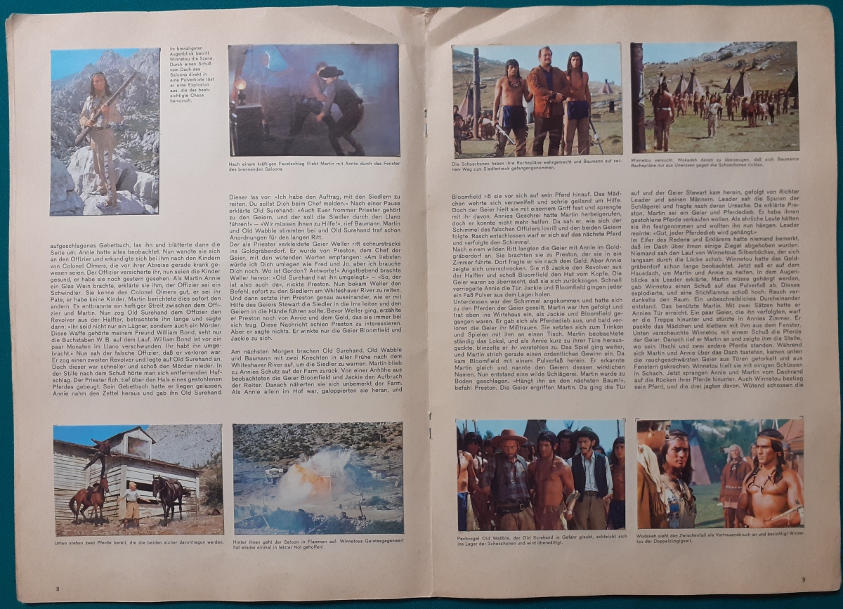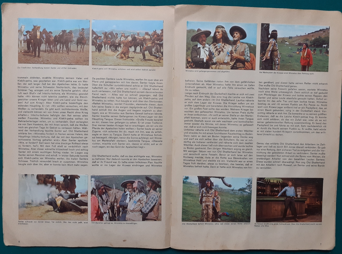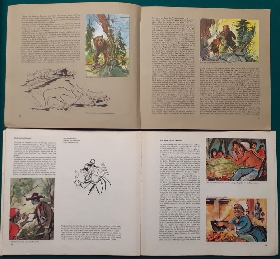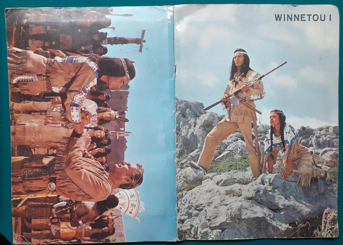 Winnetou I Eikon Verlag, Belp bei Bern/Schweiz; Erstausgabe von 1959, 16 Seiten mit allen 60 montierten farbigen Sammelbildern; sauber eingeklebt; Format der Einzelbilder 8,5 x 6 cm; Album mit Pappeinband im Format 30 x 21 cm; etwas an den Albumkanten bestoßen, einige Läsuren am Blattrand; Heftung war defekt und wurde restauriert, außerdem wurde der Heftblock innen im Gelenk an verschiedenen stellen schonend mit Tesafilm stabilisiert; alle Blätter fest; insgesamt noch recht guter altersgemäßer Zustand