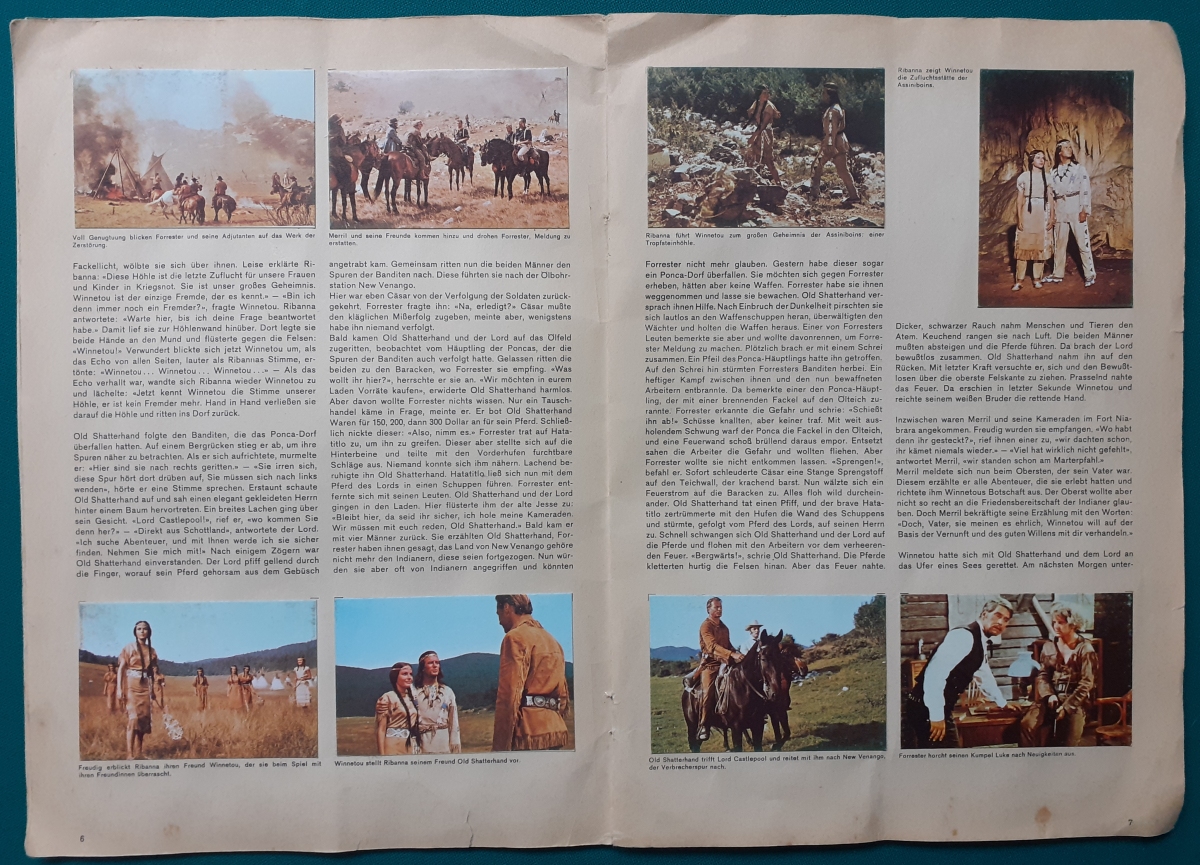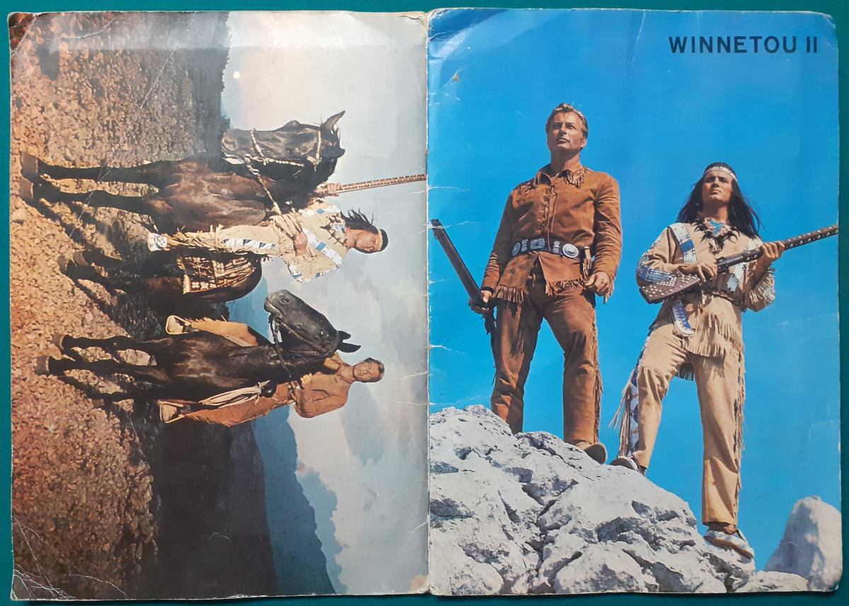 Winnetou II Eikon Verlag, Belp bei Bern/Schweiz; Erstausgabe von 1959, 16 Seiten mit allen 60 montierten farbigen Sammelbildern; sauber eingeklebt; Format der Einzelbilder 8,5 x 6 cm; Album mit Pappeinband im Format 30 x 21 cm; etwas an den Albumkanten bestoßen, einige Läsuren am Blattrand; Heftung war defekt und wurde restauriert, außerdem wurde der Heftblock innen im Gelenk an verschiedenen stellen schonend mit Tesafilm stabilisiert; alle Blätter fest; insgesamt noch recht guter altersgemäßer Zustand