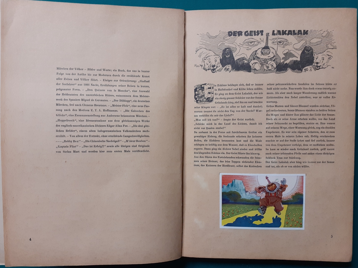 Märchen der Völker Cigaretten-Bilderdienst Hamburg-Bahrenfeld; Erstausgabe von 1932, Album mit 118 Seiten mit allen ca. 150 farbigen Sammelbildern; sauber eingeklebt; Format der Einzelbilder 10 x 7 cm; Album mit Pappeinband im Format 31 x 23,5 cm; etwas an den Albumkanten bestoßen; kleinere normale Läsuren und Einrisse; insgesamt sauber und gepflegt und guter altersgemäßer Zustand