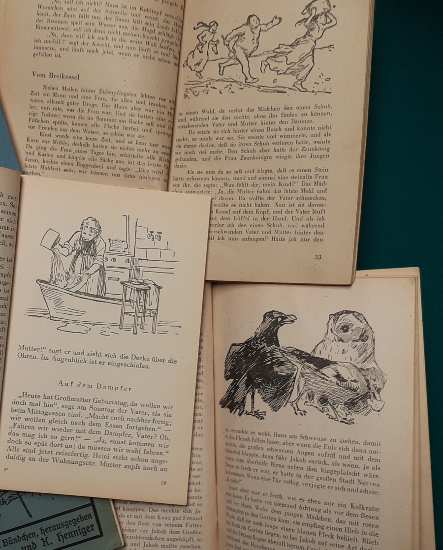 Ausgabe von 1949 unter alliierter Kontrolle, 76 Seiten, mit Illustrationen von Otto Ubbelohe; leichte Beschädigungen am Einband; insgesamt noch recht guter altersgemäßer Zustand | 4 |