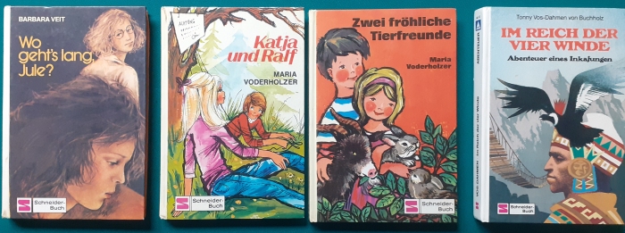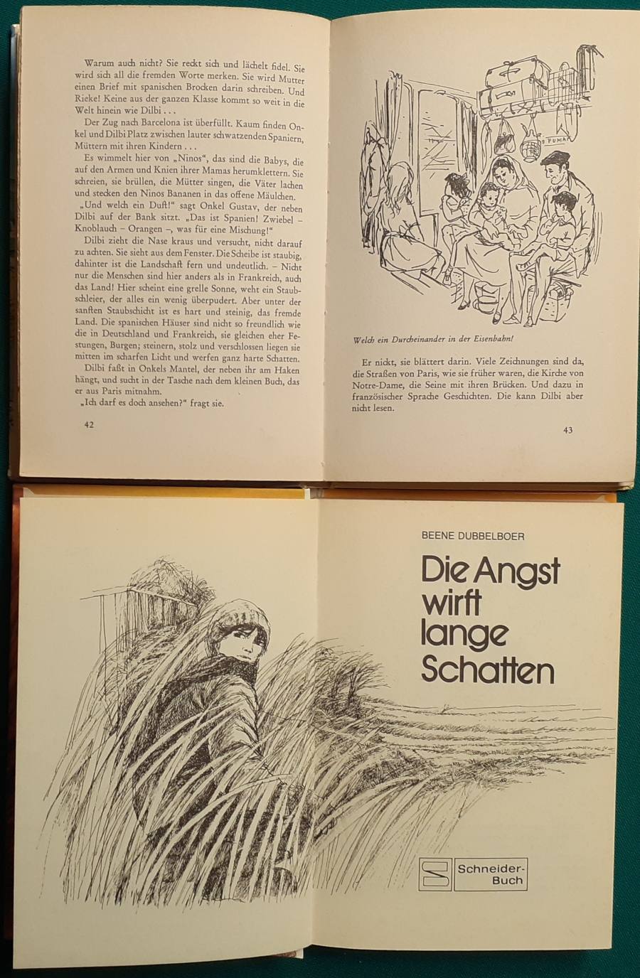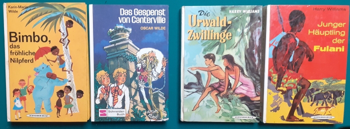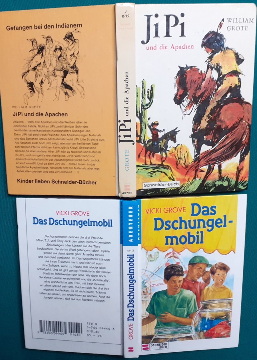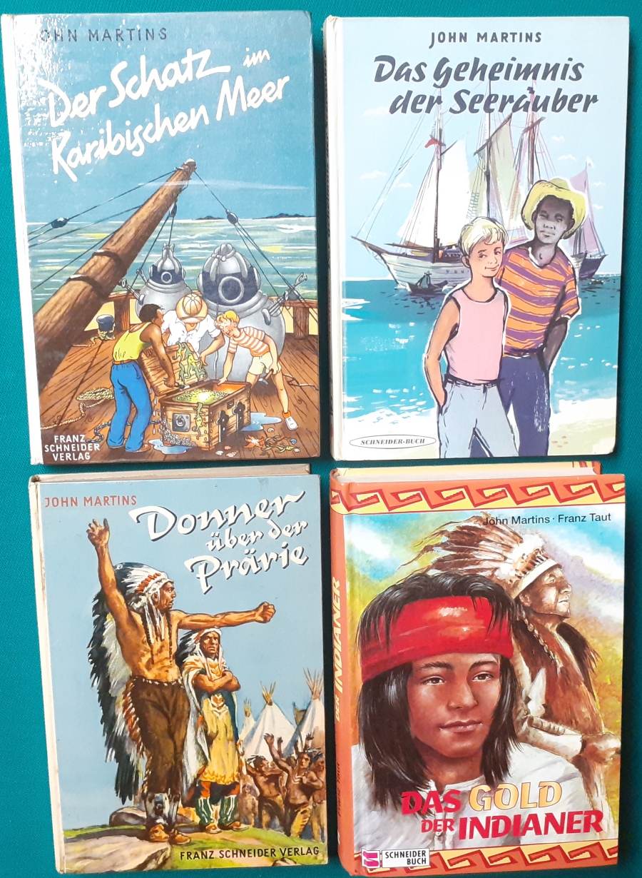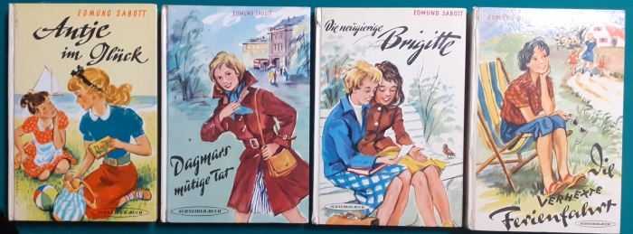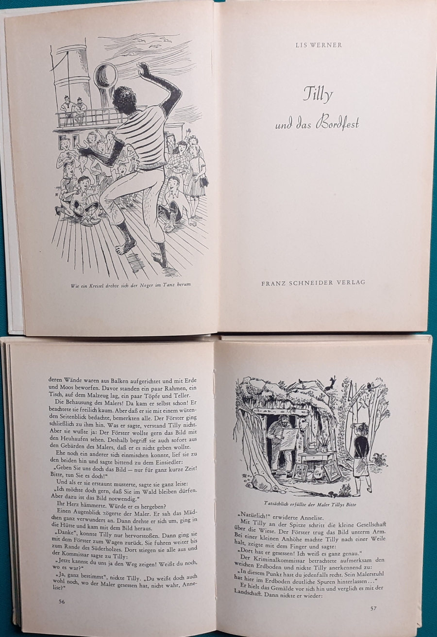 Schneider Verlag: Bernhard Dörries: Dilbi reist zur Sonneninsel 128 Seiten, Illustrationen von Marga Karlson; guter altersgemäßer Zustand Preis: 6 EUR Bernhard Dörries: geb. 1927 in Hannover, Schriftsteller, Drehbuchautor und Regisseur. Hier zur Illustratoren-Galerie mit typischen Arbeiten von Marga Karlson Beene Dubbelboer: Die Angst wirft lange Schatten Illustrationen von Haidrun Gschwind, Ausgabe von 1982, 190 Seiten, guter altersgemäßer Zustand Preis: 6 EURO Beene Dubbelboer; 1906-1982, niederländischer Schriftsteller und Automechaniker Hier zur Illustratoren-Galerie mit typischen Arbeiten von Haidrun Gschwind |