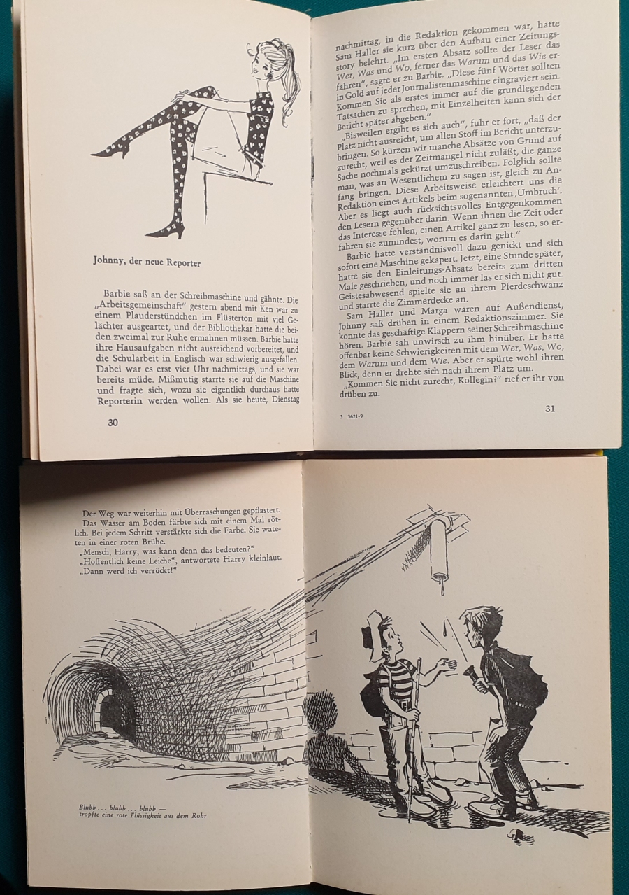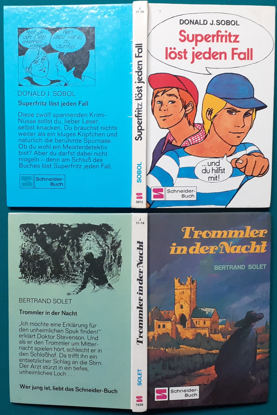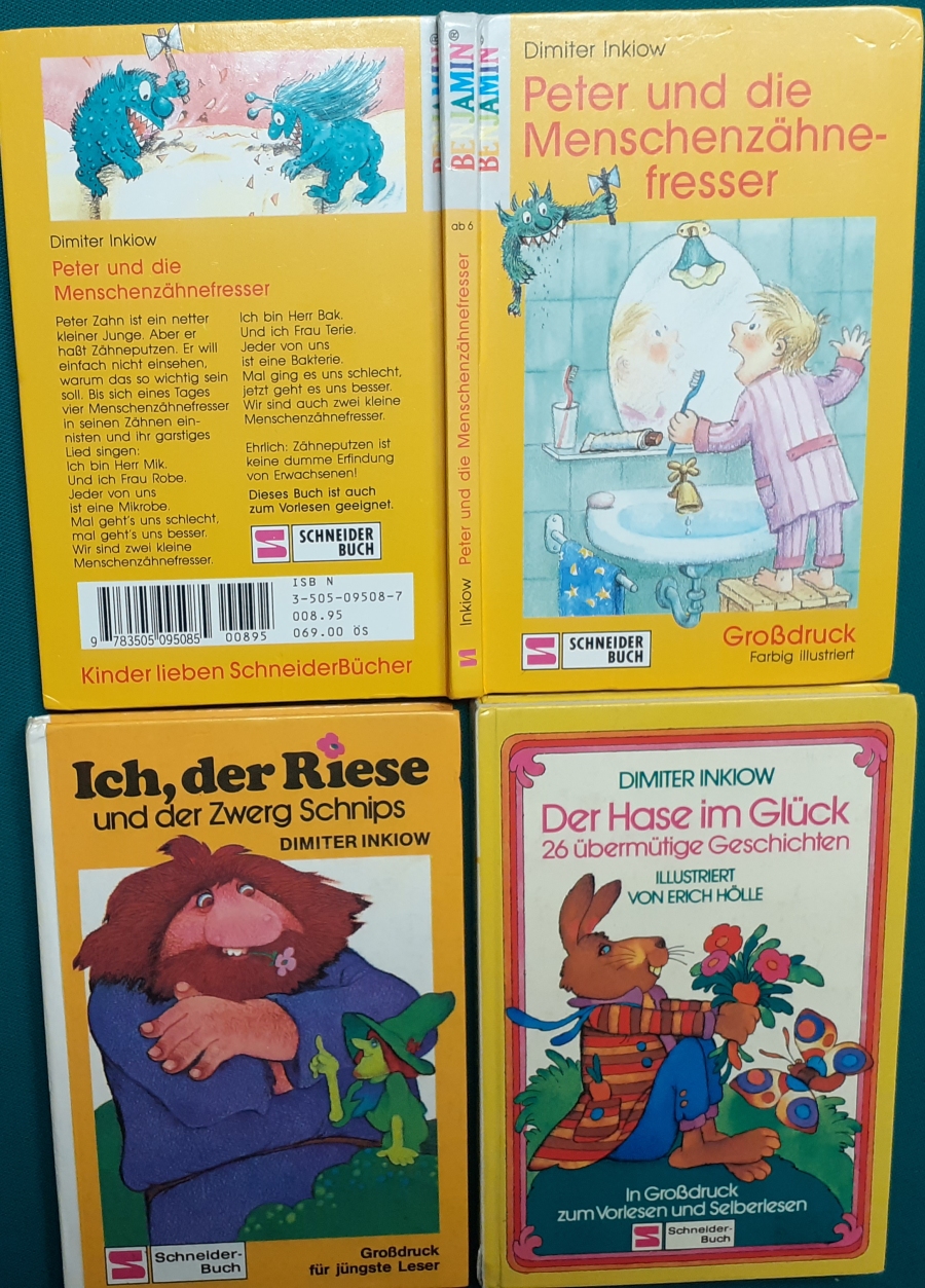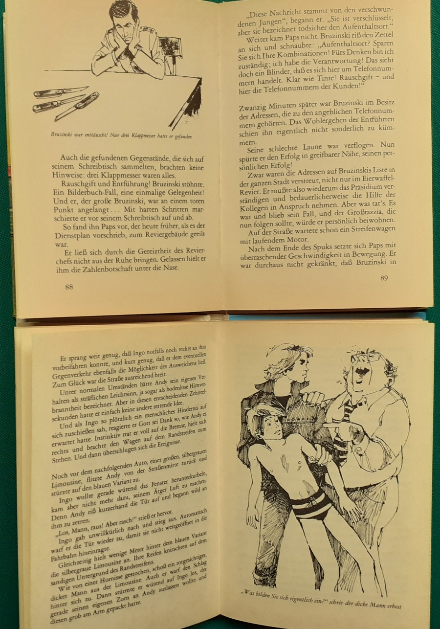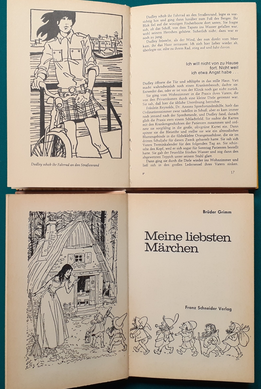 Schneider Verlag: Bernhard Dörries: Dilbi reist zur Sonneninsel 128 Seiten, Illustrationen von Marga Karlson; guter altersgemäßer Zustand Preis: 6 EUR Bernhard Dörries: geb. 1927 in Hannover, Schriftsteller, Drehbuchautor und Regisseur. Hier zur Illustratoren-Galerie mit typischen Arbeiten von Marga Karlson Beene Dubbelboer: Die Angst wirft lange Schatten Illustrationen von Haidrun Gschwind, Ausgabe von 1982, 190 Seiten, guter altersgemäßer Zustand Preis: 6 EURO Beene Dubbelboer; 1906-1982, niederländischer Schriftsteller und Automechaniker Hier zur Illustratoren-Galerie mit typischen Arbeiten von Haidrun Gschwind |