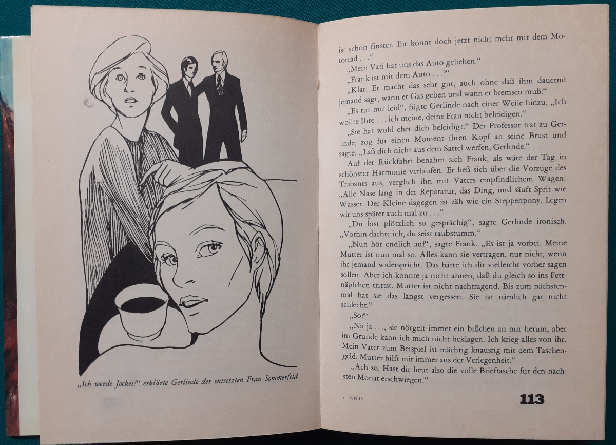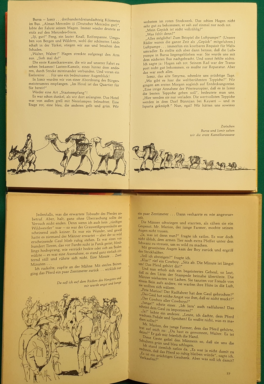 Dick: Illustrationen von Jörg Mayer-Bothling, Ausgabe von 1974, 254 Seiten, fester Hardcover Einband mit Schutzumschlag, sehr guter altersgemäßer Zustand Preis: 6 EURO Sieglinde Dick (Sieglinde Franzke) (geb. am 19. Juni 1943 in Potsdam; gest. am 10. März 2003 in Münchehofe) war 1960 der erste weibliche Jockey der DDR, Distanzreiterin und Schriftstellerin. Als erster weiblicher Profi-Jockey der DDR schrieb sie Sportgeschichte. Bis 1972 startete sie für verschiedene Hoppegartener Rennställe und arbeitete parallel dazu als Reitlehrerin. Nach dem Ende ihrer Karriere als Rennreiterin verfasste sie unter anderem mehrere (Jugend-)Bücher über das Thema weibliche Jockeys. |
