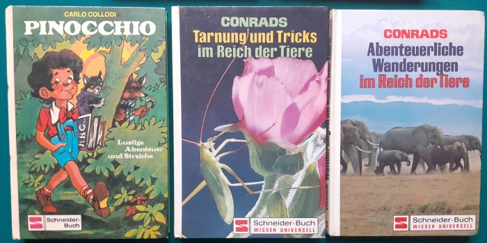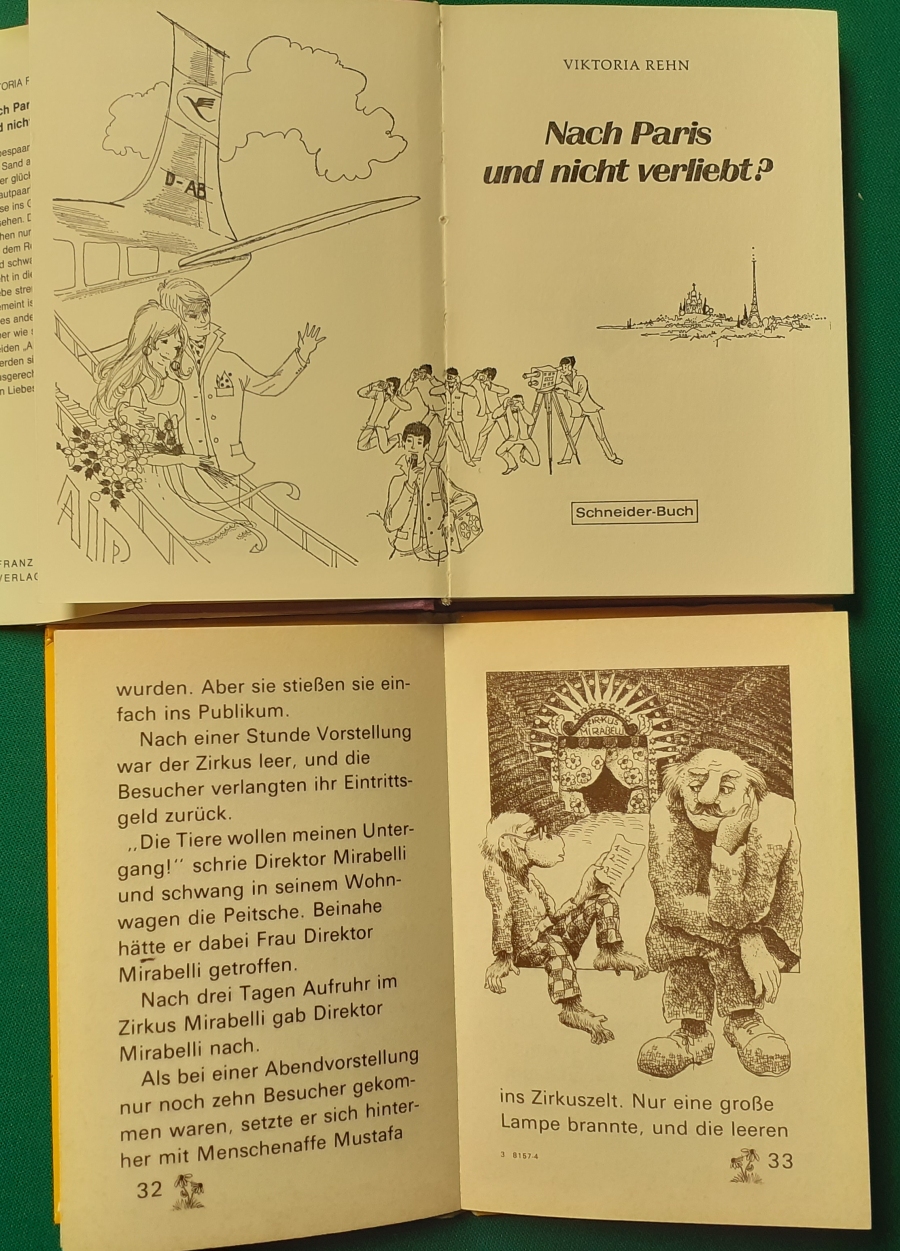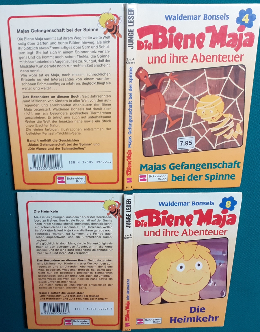 Schneiderbücher der 1980er Jahre Band 4: Majas Gefangenschaft bei der SpinneBilder aus dem Apollo Film, Ausgabe von 1985, 124 Seiten, ein Rätsel hinten im Buch schon gelöst; sonst guter altersgemäßer Zustand Preis: 5 EURO Band 8: Die HeimkehrBilder aus dem Apollo Film, Ausgabe von 1986, 124 Seiten, hinten im Buch sind schon einige Spiele bearbeitet; sonst guter altersgemäßer Zustand Preis: 5 EURO |