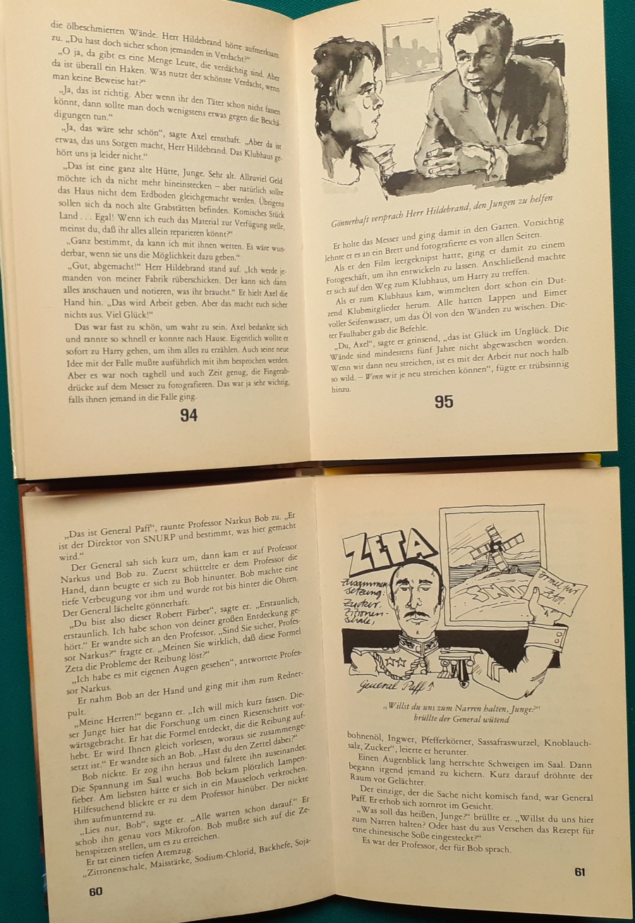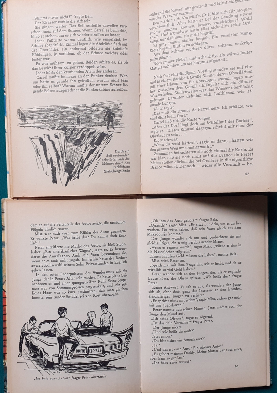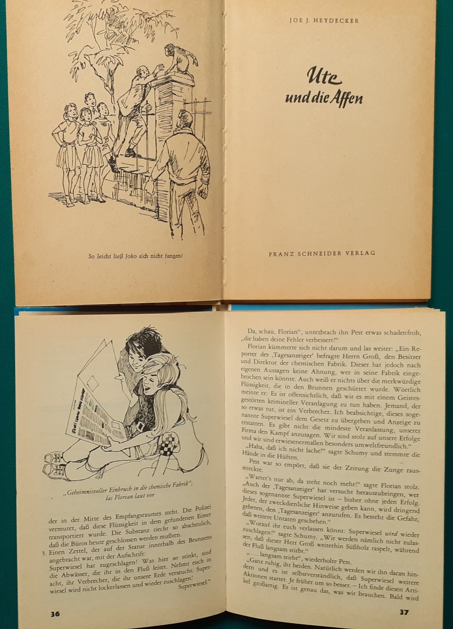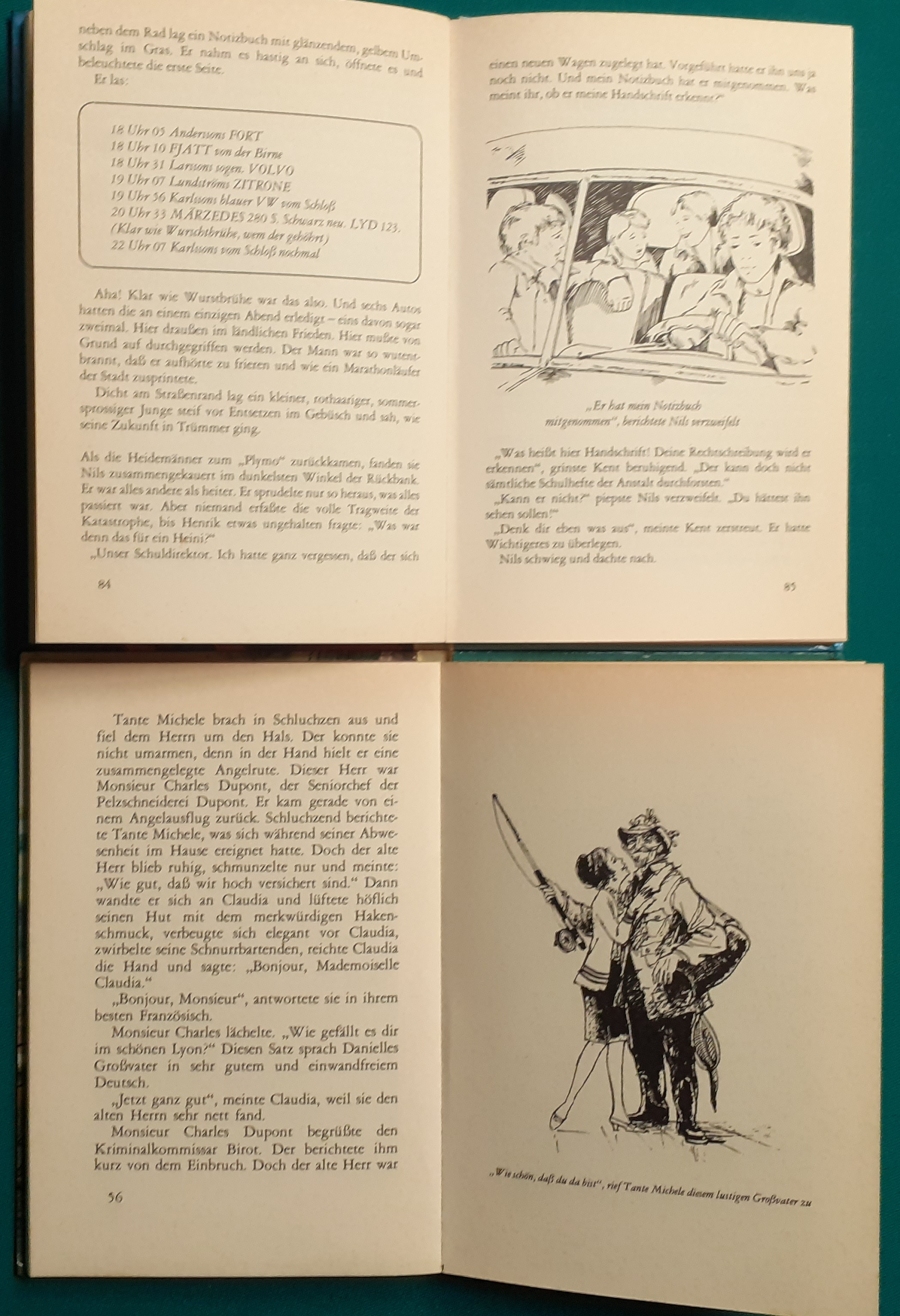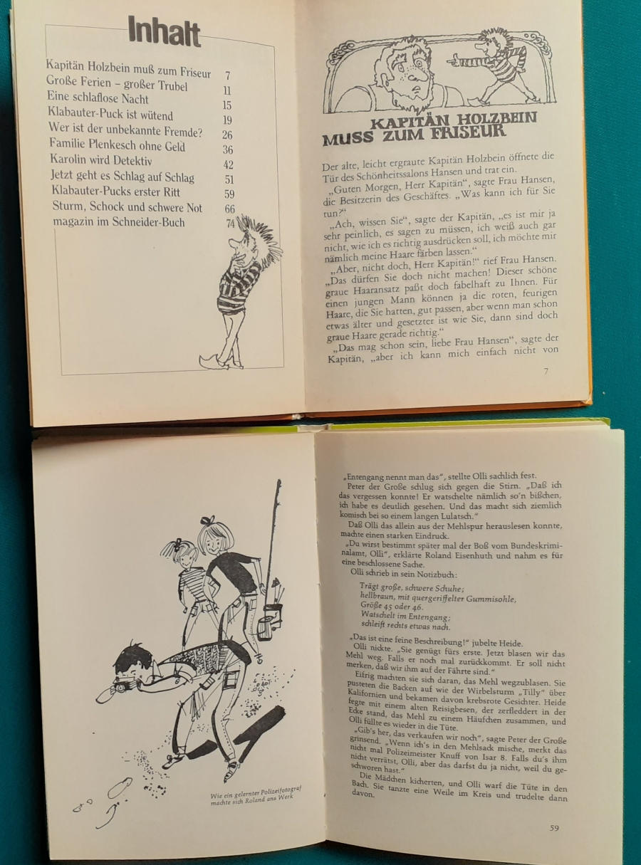 Schneider Verlag: Rudolf Eger: Tonio der junge Venezianer 88 Seiten, Illustrationen von Ulrik Schramm, guter altersgemäßer Zustand Preis: 6 EUR Rudolf Eger (auch: Rudolf Georg Christian Eger, Rudolph Eger, geboren am 16. Januar 1885 in Wien; gest. am 18. Februar 1965 in München) war ein österreichisch-schweizerischer Schriftsteller und Regisseur. Er schrieb auch unter den Pseudonymen Rudolf Hochglend und Georg Rudolph. Eger war Verfasser von Romanen, Kinder- und Jugendbüchern, Theaterstücken und Libretti. Hier zur Illustratoren-Galerie mit typischen Arbeiten von Ulrik Schramm M. Elting: Die Hubschrauber-Detektive Illustrationen von E. Puelma und Werner Kulle, Ausgabe um 1965, 128 Seiten, guter altersgemäßer Zustand Preis: 6 EURO Mary Elting (geb. am 21. Juni 1906 in Creede, Colorado, gest. am 29. Januar 2005) war eine US-amerikanische Schriftstellerin. Sie verwendete auch das Pseudonym Cole Davis. Hier zur Illustratoren-Galerie mit typischen Arbeiten von Werner Kulle