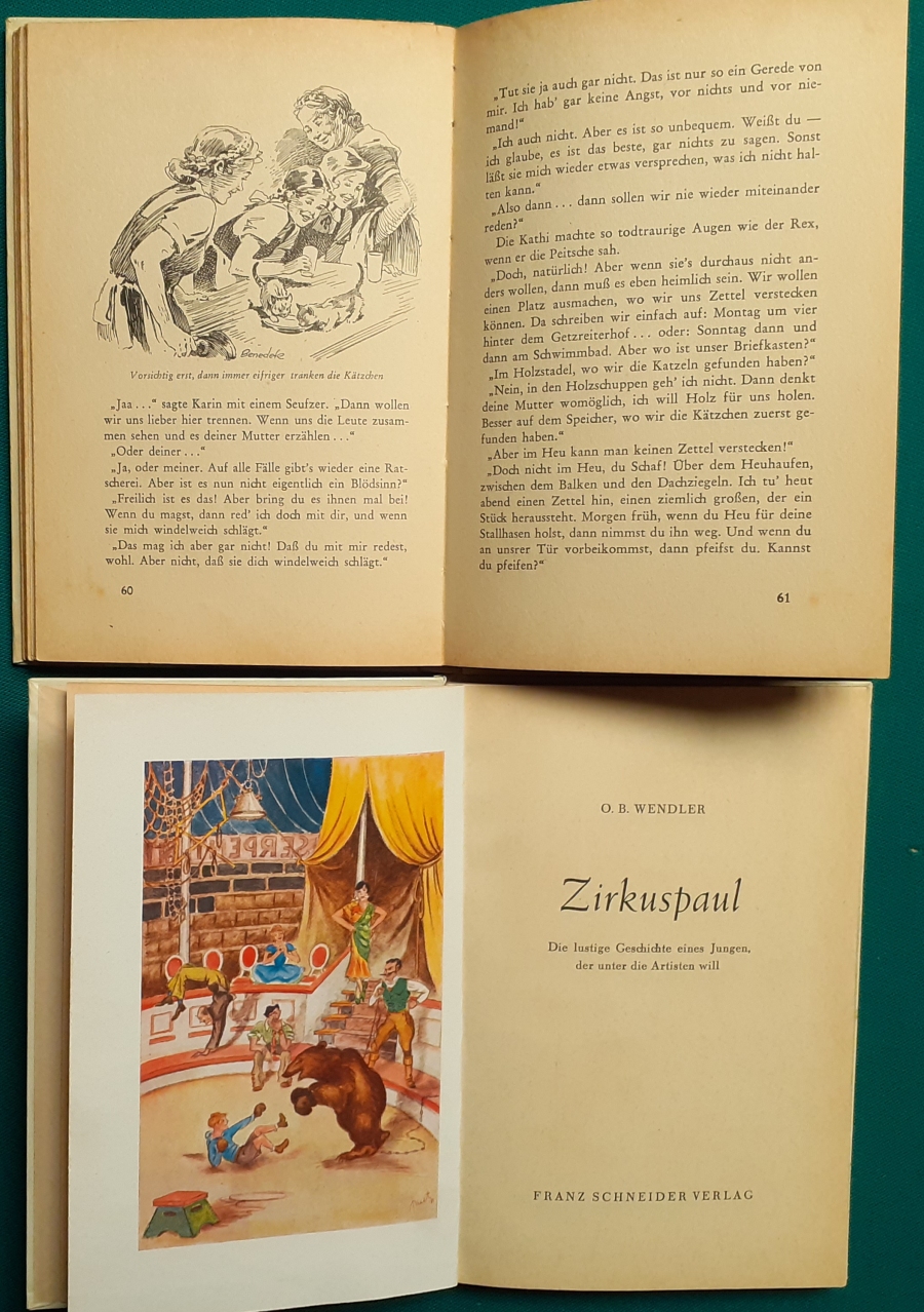 A. E. Weirauch: Karin und Kathi Mädelfreundschaft durch dick und dünn 110 Seiten, Illustrationen von C. Benedek; guter altersgemäßer Zustand Preis: 6 EUR Hier zur Illustratoren-Galerie mit typischen Arbeiten von Carl Fr. J. Benedek