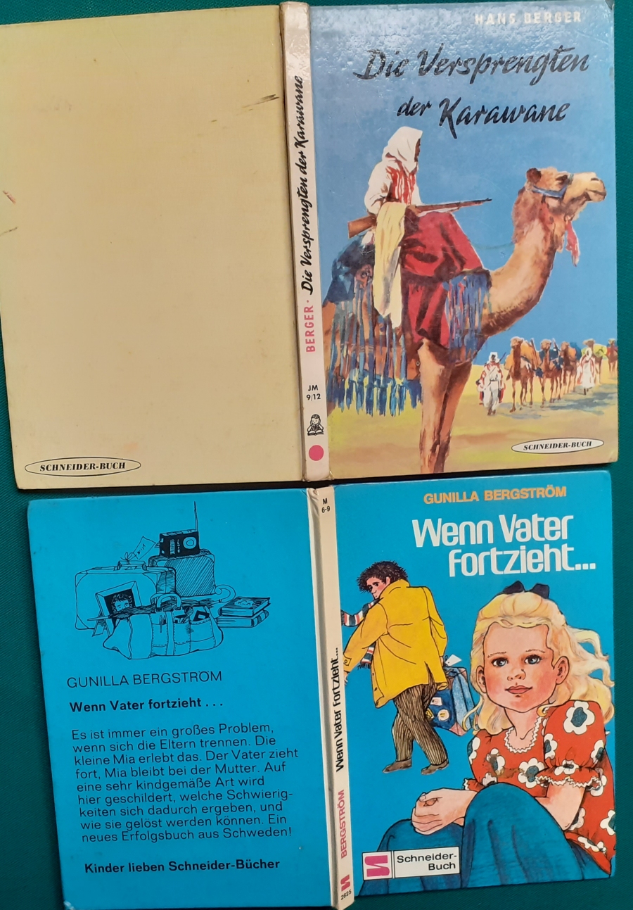 Schneider Verlag: Hans Berger: Die Versprengten der Karawane 64 Seiten, Illustrationen von Walter Rieck, guter altersgemäßer Zustand Preis: 6 EUR Hier zur Illustratoren-Galerie mit typischen Arbeiten von Walter Rieck Gunilla Bergström: Wenn Vater fortzieht ... Illustrationen von Renate Vögel-Cossmann, Erstausgabe von 1974, 60 Seiten, guter altersgemäßer Zustand Preis: 6 EURO Hier zur Illustratoren-Galerie mit typischen Arbeiten von Renate Vögel-Cossmann Viele weitere Bücher von Gunilla Bergström siehe hier ... |