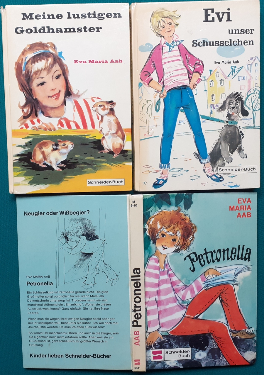 unser Schusselchen Petronella Eva Maria Hassencamp, geborene Eva Maria Aab (geb. am 24. Mai 1920 in Pforzheim; gest. am 23. Mai 2012 in München) war eine deutsche Regisseurin, Autorin, Filmproduzentin und Moderatorin. Unter ihrem Geburtsnamen Eva Maria Aab schrieb sie mehrere erfolgreiche Kinderbücher. 1967 heiratete sie in zweiter Ehe den Schriftsteller Oliver Hassencamp. Hier der Link zum Schriftsteller Oliver Hassencamp .... 1988 überlebte Eva Hassencamp mit schweren Verletzungen einen Autounfall, bei dem ihr Mann tödlich verunglückte. Nach jahrelangen Klinikaufenthalten gab sie ihren Beruf auf. Sie verwaltete bis zu ihrem Tod den Nachlass ihres Mannes. |