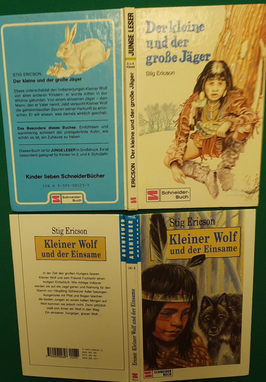 Kleiner Wolf und der Einsame Stig Ericson (geb. 1929 in Stockholm; gest. 1986) war ein schwedischer Kinderbuchautor und Musiker. Im Großteil seiner Bücher versucht er dem Leser das Leben und Schicksal der nordamerikanischen Indianer näherzubringen. 1970 wurde er mit der Nils-Holgersson-Plakette ausgezeichnet. |