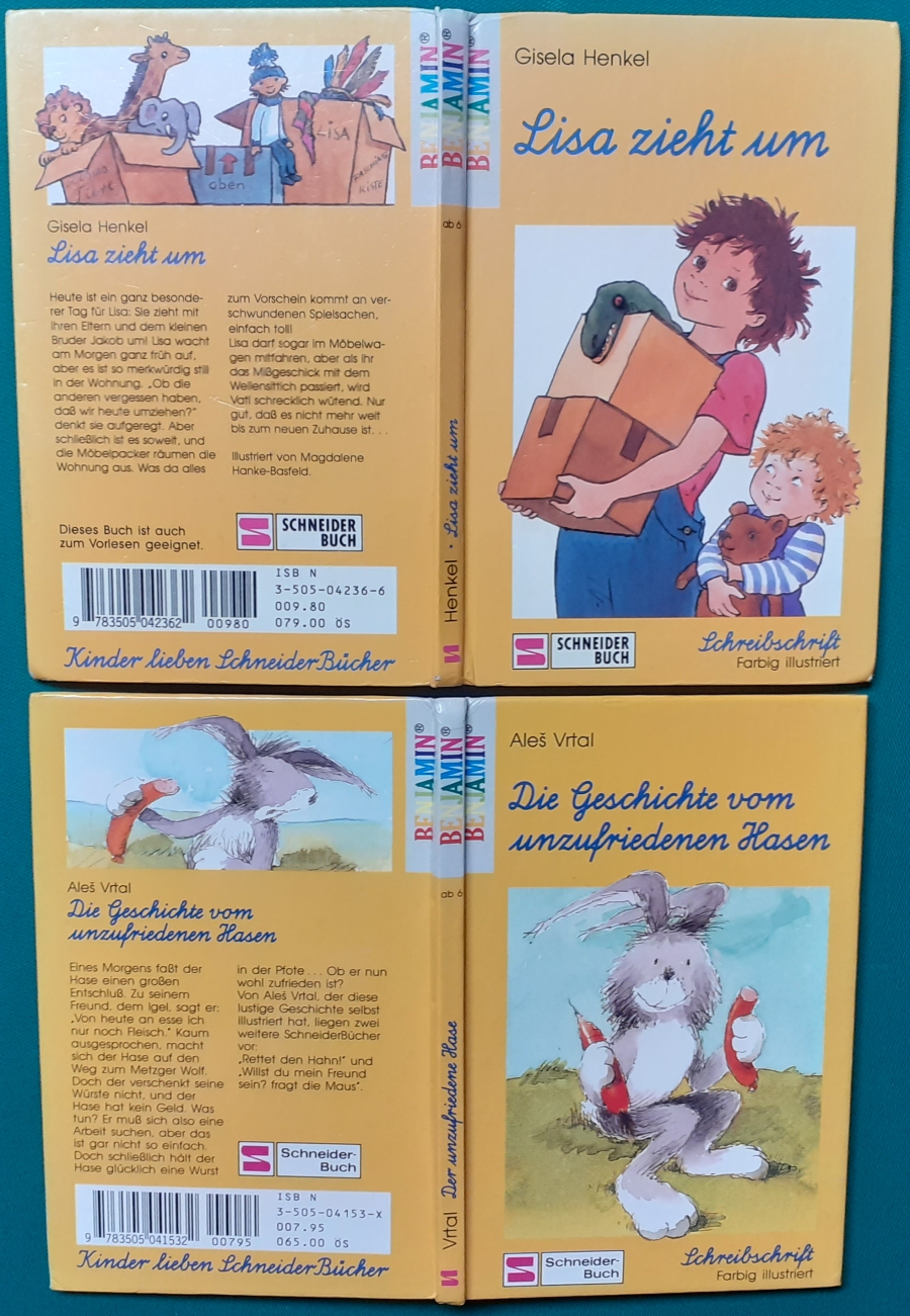 abwaschbare Einbände im Format 20 x 14 cm, jeweils mit vielen