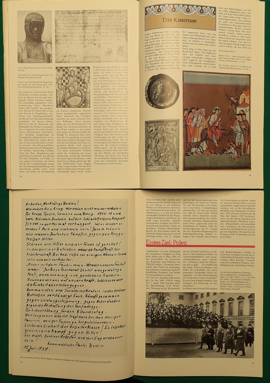 Fragen an die deutsche Geschichte Begleitkatalog zu einer historischen Ausstellung im Reichstagsgebäude in Berlin; Presse- und Informationszentrum des Bundestages, Ausgabe von 1981, 480 Seiten; rundum lackierter Paperbackeinband; voller Dokumente; Fotos und Abbildungen; altersgemäßer sehr guter Zustand, Preis: 6 EUR  |