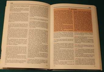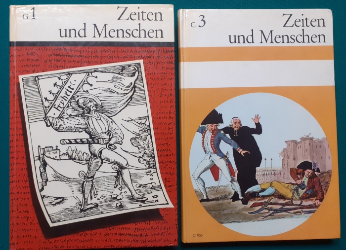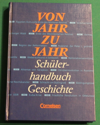 Von Jahr zu Jahr Schülerhandbuch Geschichte im Cornelsen-Hirschgraben Verlag; Frankfurt/M. Hrsg. Heinrich Pleticha u. Hans Peter Thiel Ausgabe von 1997, 336 Seiten, hochwertiger Glattleinen-Einband im Format 19,5 x 13,5 cm; sehr guter altersgemäßer Zustand - offenbar kaum benutzt Inhalt: Das Nachschlagewerk enthält die in den Lehrplänen geforderten Geschichtsdaten: Chronologie mit Zeitleiste; Biografien bedeutenden historischer Persönlichkeiten; Lexikon historischer Begriffe ... Preis: 6 EURO  |