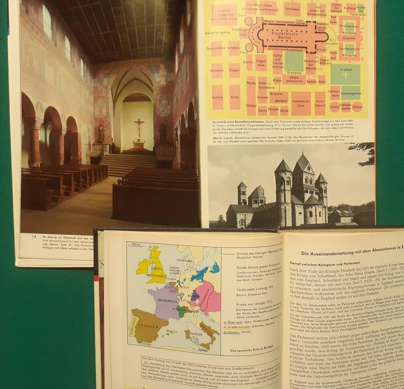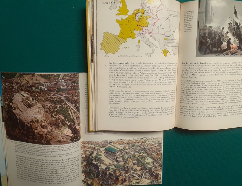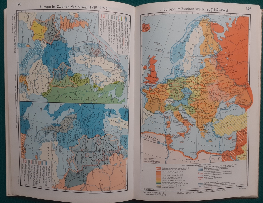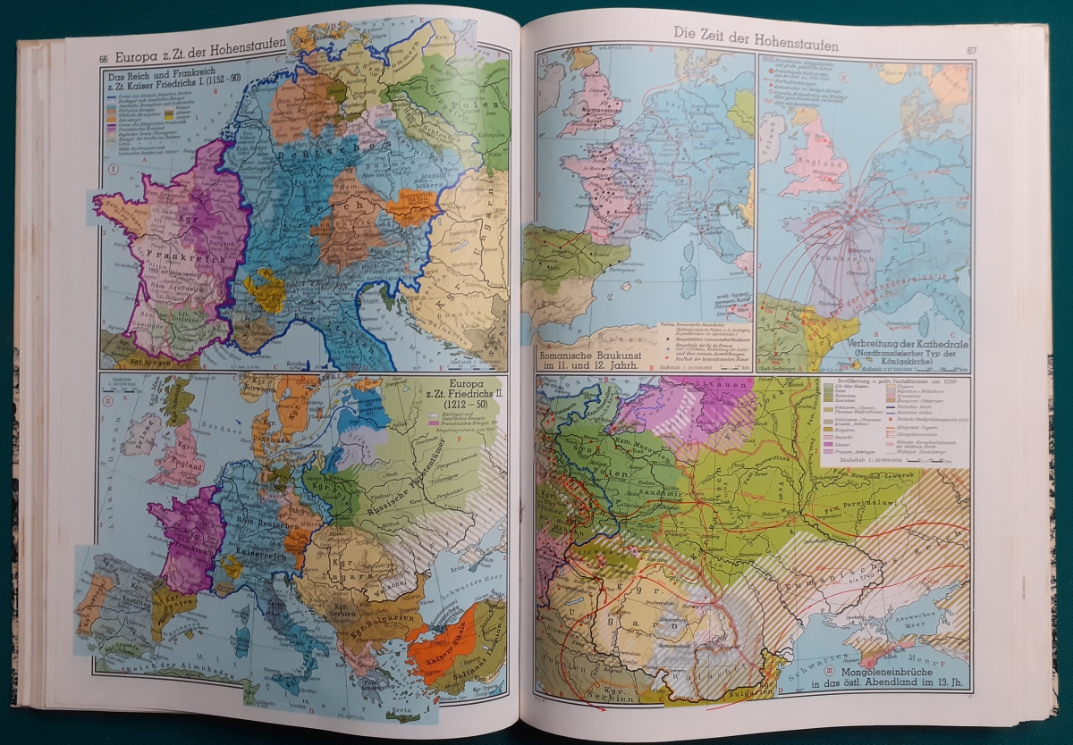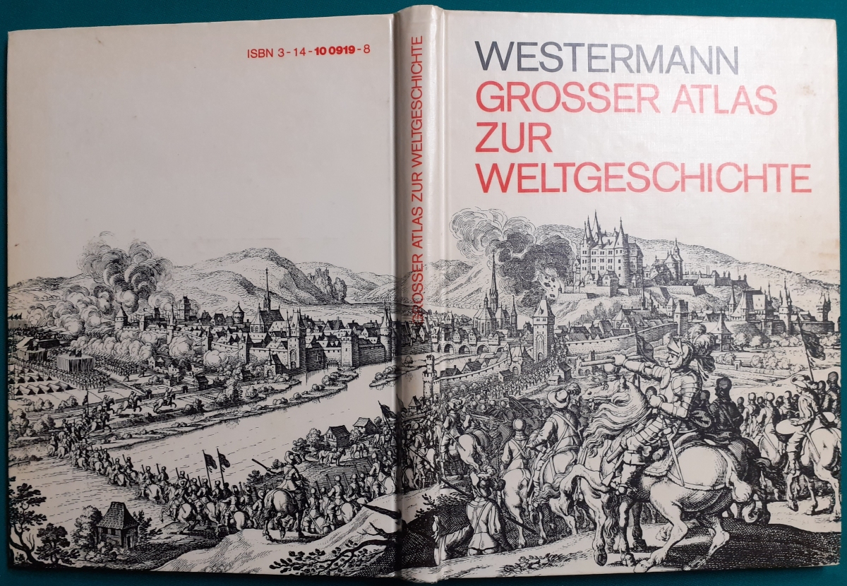 Grosser Atlas zur Weltgeschichte Westermann Verlag, Braunschweig, 10. Auflage von 1978, 170 Seiten zuzüglich eines großen und sehr genauen Registers im Anhang mit 78 Seiten; 30 x 22 cm, sehr stabiler glatter Voll-Leinen-Einband; Einband etwas fleckig; sonst sauber und sehr guter altersgemäßer Zustand