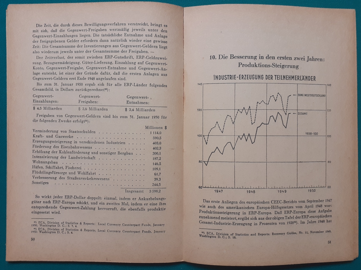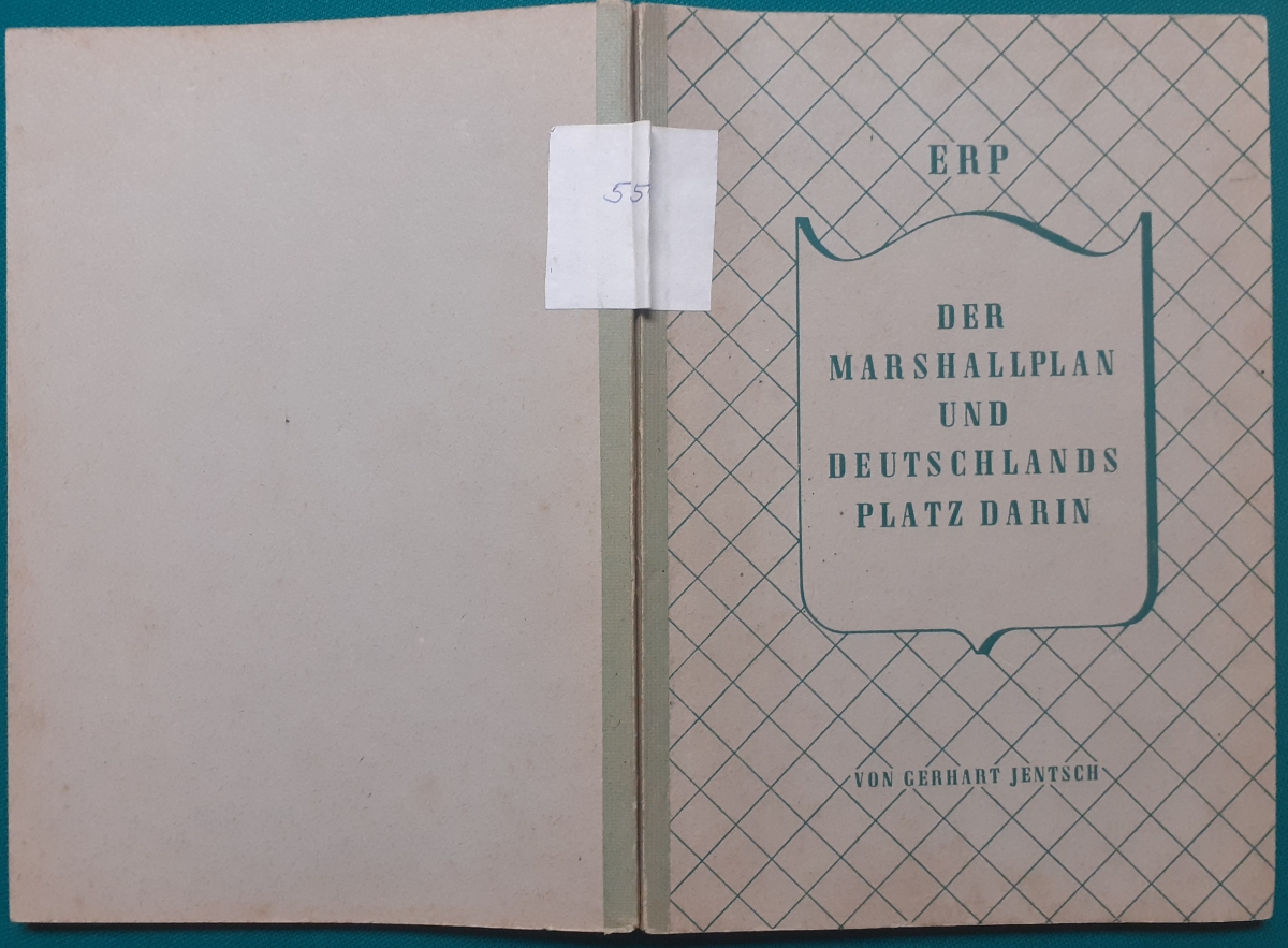 ERP - Der Marshallplan  von Gerhart Jentsch; ECA Mission für Westdeutschland, Frankfurt/M., Ausgabe von 1950, broschürtes Heft mit 96 Seiten; Format 20,5 x 14,5 cm, Papier altersgemäß recht gelb; sonst guter altersgemäßer Zustand - offensichtlich kaum benutzt,