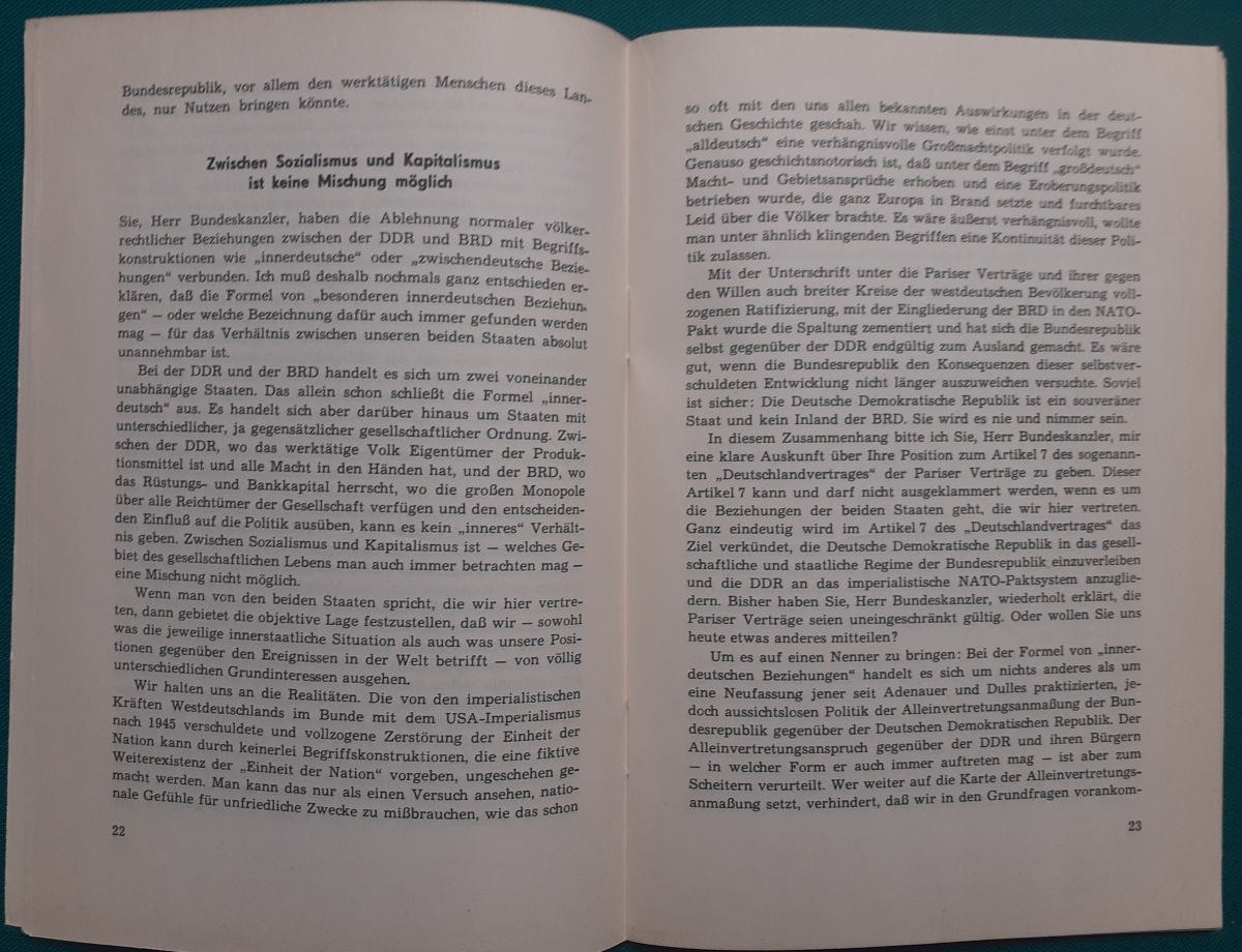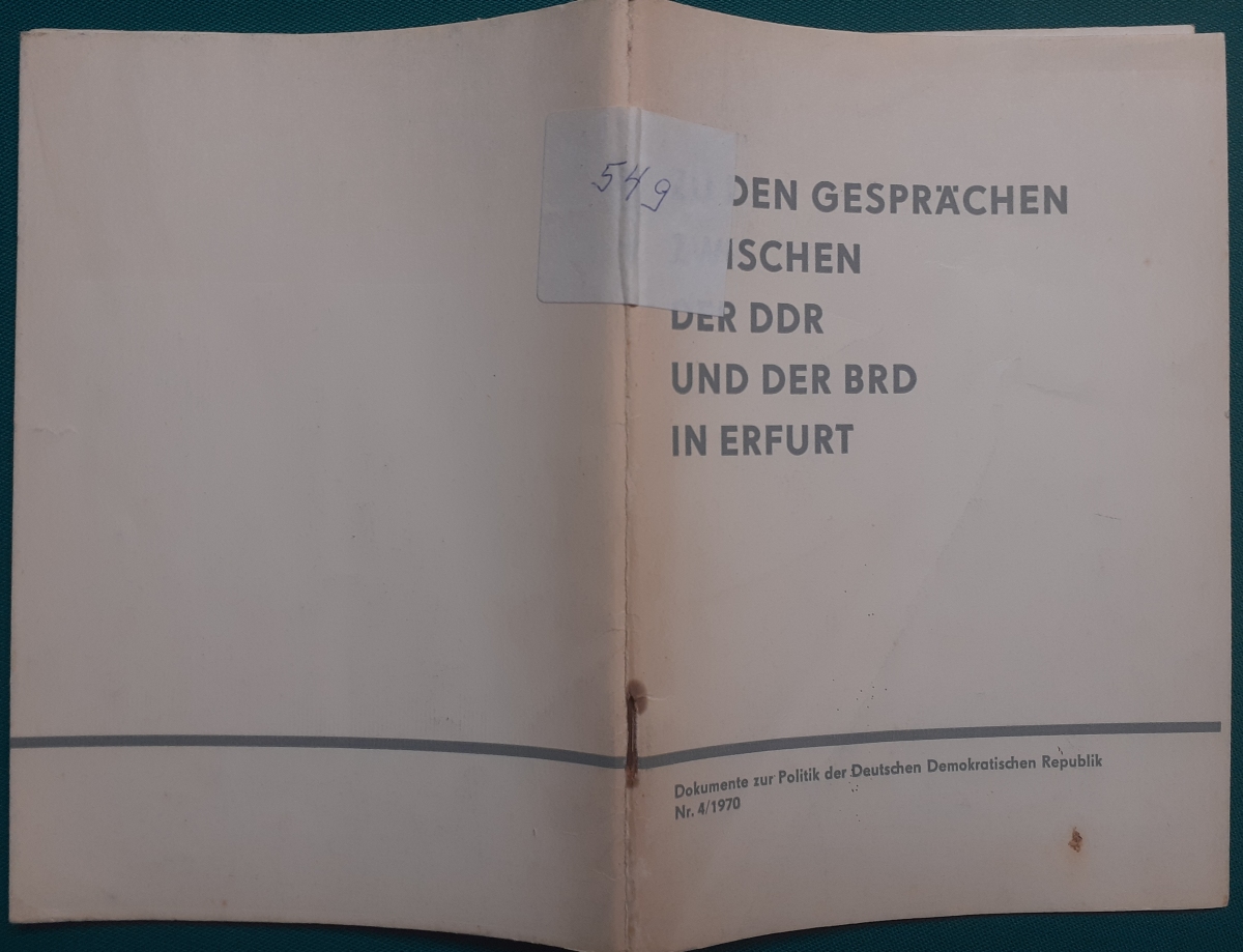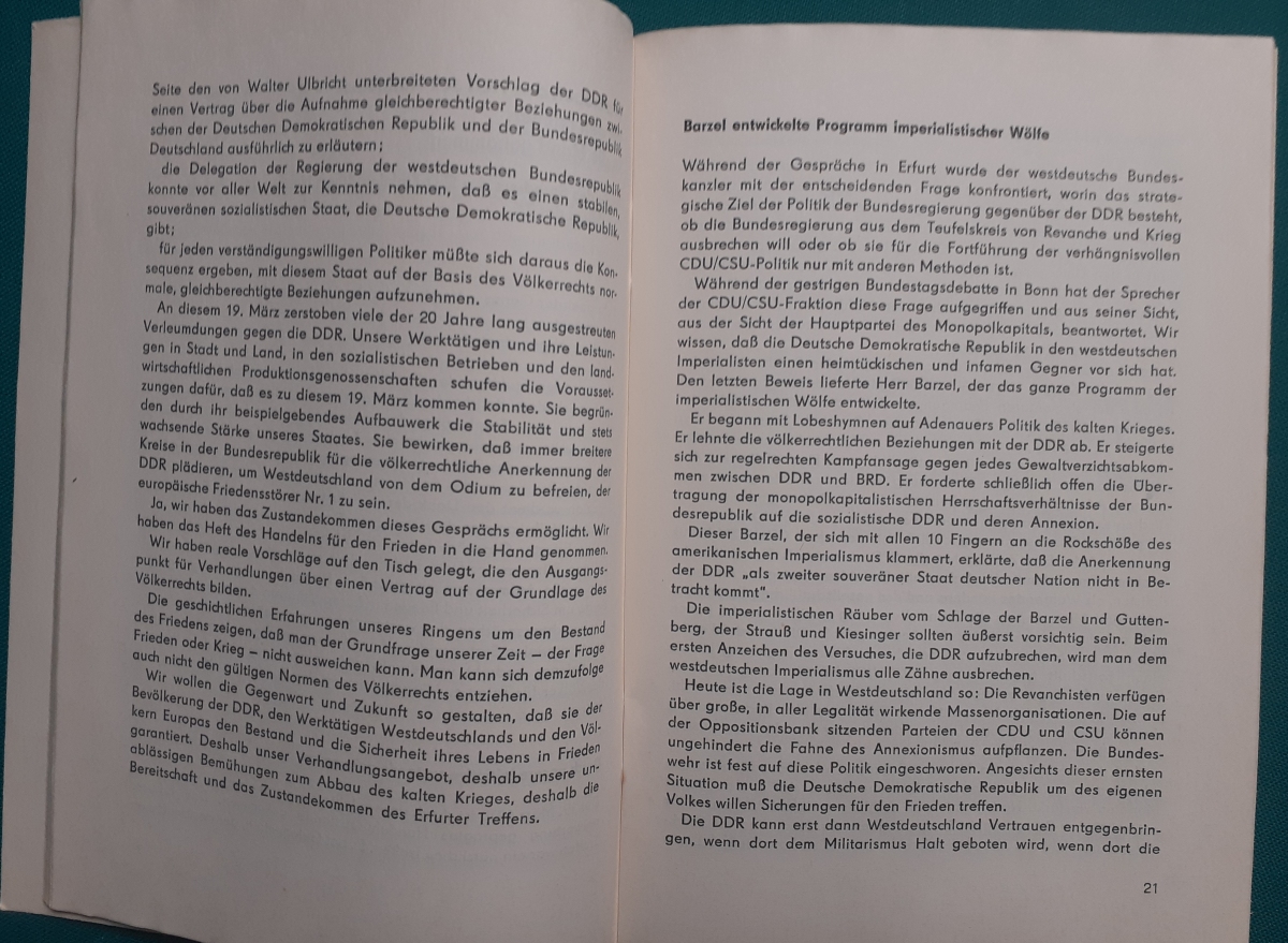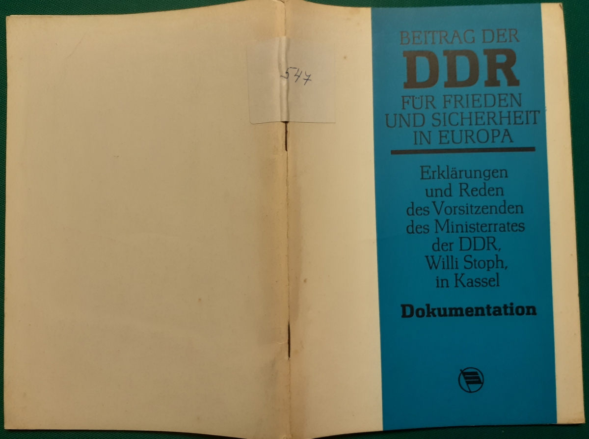 Beitrag der DDR für Frieden und Sicherheit in Europa Staatsverlag der DDR, Berlin; Ausgabe von 1970, Heft mit 64 Seiten; Format 21 x 14,5 cm, guter altersgemäßer Zustand - offensichtlich kaum benutzt,