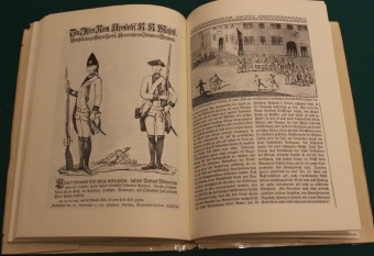 Hofmann Verlag, Berlin, Ausgabe von 1902, monumentales Werk mit 580 Seiten!!!, mit 277 zeitgenössischen Bildern, 27 faksimilierten Schriftstücken, Beilagen und Plänen, dekorativer Voll-Leinen Einband im Maxi-Format 28,5 x 21 cm; aufwändiges Werk mit vielen montierten ausklappbaren Dokumenten im Überformat; etwas an den Buchkanten bestoßen; Bindung noch fest und insgesamt sehr gepflegt und sehr guter altersgemäßer Zustand Zum Inhalt: Preis: 29 EUR  |