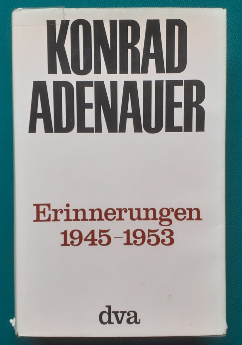 Konrad Adenauer: Deutsche Verlagsanstalt Stuttgart; Ausgabe von 1965; 592 Seiten; Voll-Leinen Einband mit Schutzumschlag; mit vielen zeitgenössischen Fotos; Papier-Schutzumschlag etwas beschädigt; guter altersgemäßer Zustand Preis 7 EUR  |