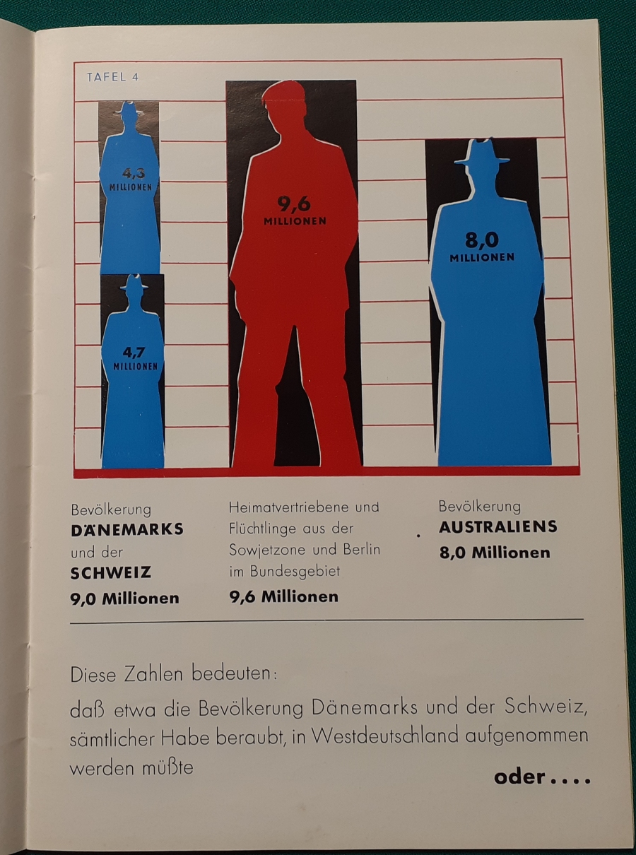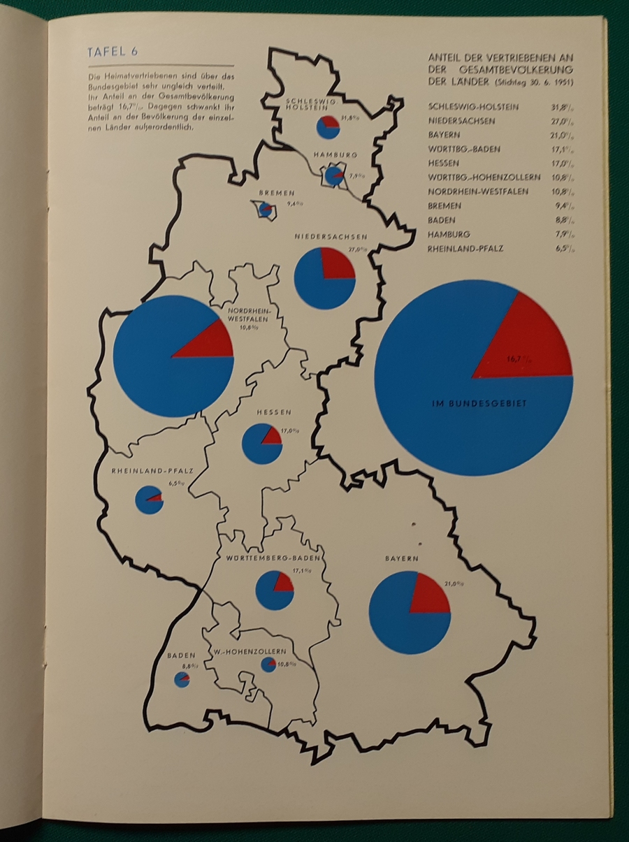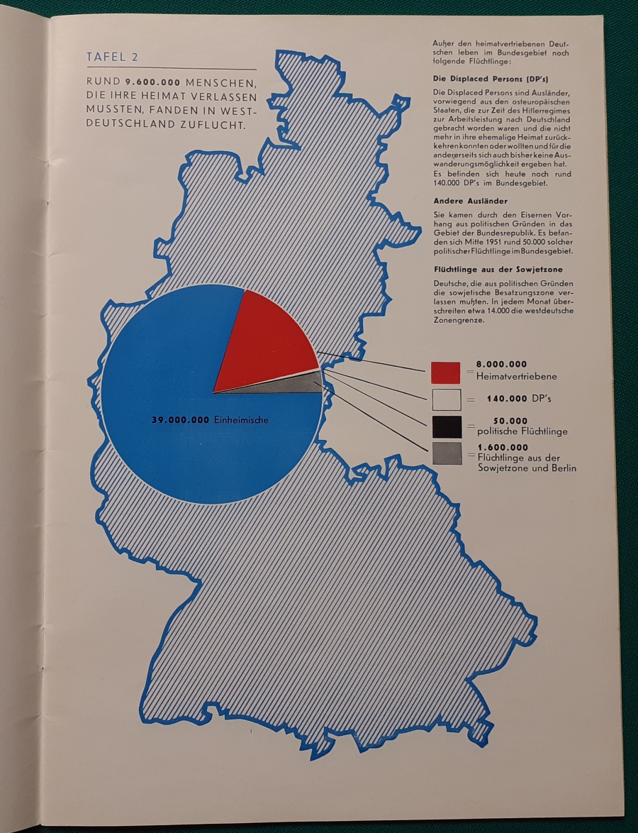 Tatsachen zum deutschen Vertriebenenproblem 1952 Ausgabe von 1952; Hrsg. Bundesministerium für Vertriebene, Bonn; Heft mit 11 bunten Hochglanz-Tafeln im Großformat DIN A4; an den Heftkanten leicht bestoßen; insgesamt guter altersgemäßer Zustand Preis: 5 EURO  |