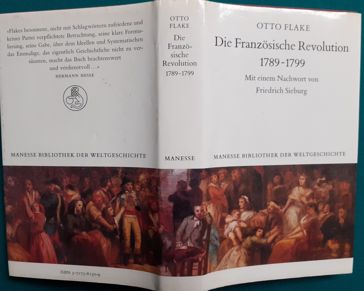 Die Französische Revolution 1789 - 1799 von Otto Flake; Manesse Bibliothek der Weltgeschichte; Zürich; Ausgabe von 1988; 480 Seiten, mit diversen zeitgenössischen Abbildungen; sehr stabiler fester Voll-Leinen Einband mit Schutzumschlag; sehr guter altersgemäßer Zustand Preis: 9 EUR Otto Flake (geb. am 29. Oktober 1880 in Metz; gest. am 10. November 1963 in Baden-Baden) war ein deutscher Schriftsteller. Flake gehörte zu den wichtigsten expressionistischen Vertretern einer reflektiven Prosa, die Narration und Reflexion ineinander setzten.  |