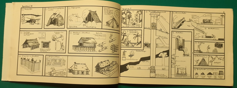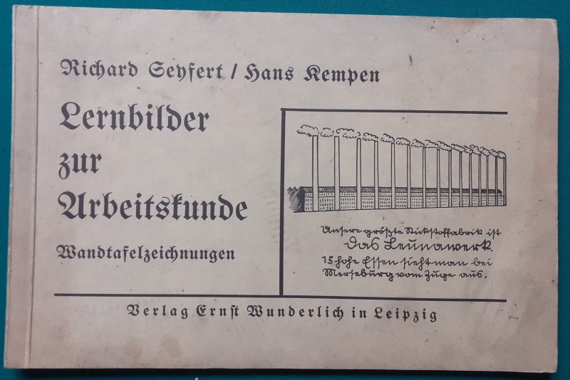 Lernbilder zur Arbeitskunde Wunderlich Verlag, Leipzig; von Richard Seyfert und Hans Kempen; Ausgabe von 1939, Hartpappeinband mit 54 Seiten im Format 19 x 29 cm; Einband etwas fleckig guter altersgemäßer Zustand, Überschriften der 52 Tafeln: Preis 12 EUR |