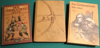 Links die älteren Auflagen mit Leinenrücken, Hartpappeinband und Schutzumschlag - rechts der feste Hardcovereinband |