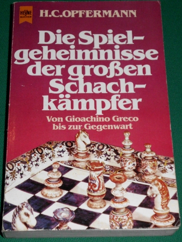 Die neue Schachschule von H. C. Opfermann, Heyne Verlag, München; Ausgabe von 1980; 386 Seiten; Taschenbuchausgabe; leicht an den Buchkanten bestoßen; insgesamt sehr guter altersgemäßer Zustand