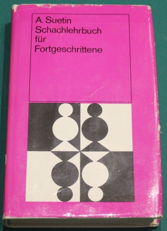 Schachlehrbuch für Fortgeschrittene von Aleksei Suetin, im Sportverlag Berlin; Ausgabe von 1989; 376 Seiten; fester Voll-Leinen Einband mit Schutzumschlag im Format 19,5 x 12 cm; leicht an den Buchkanten bestoßen; Papier-Schutzumschlag beschädigt; insgesamt guter altersgemäßer Zustand