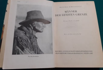 Hier das allererste Buch von Graueule: Wäscha-kwonnesin (Graueule): Männer der letzten Grenze Kosmos Verlag, Stuttgart; Ausgabe von 1946 unter alliierter Kontrolle; 220 Seiten, mit 16 Bildtafeln; Leinenrücken mit festem lackierten Hartpappeinband; Einband berieben und etwas fleckig; altersgemäßer noch recht guter Zustand, Preis: 8 EUR |