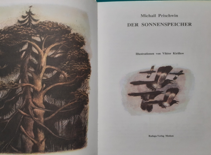 Prischwin: Der Sonnenspeicher Raduga-Verlag Moskau, Ausgabe von 1984, 96 Seiten, Illustrationen von Viktor Kirillow, rundum lackierter fester Hartpappeinband im Format 29 x 22,5 cm, sehr fester Einband, sehr guter altersgemäßer Zustand, Preis: 9 EURO |