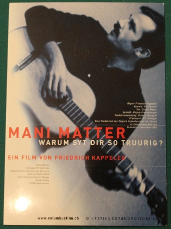 Postkarte Herausgeber: Columbus Film mit dem Film: Mani Matter: Warum syt dir so truurig? Regie: Friedrich Kappeler; Schweizer Fernsehen Karte von 2002; nicht gelaufen; sehr guter Zustand Preis: 1 EURO |